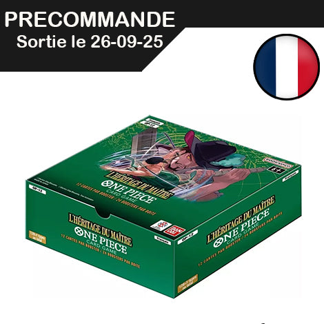 Plonge dans une nouvelle ère du JCC One Piece avec OP-12 : l'héritage du Maitre ! Ce set met à l’honneur les liens puissants entre maître et élève à travers des mécaniques innovantes et des duos légendaires issus de l’univers de One Piece. Idéal pour les fans, les joueurs compétitifs et les collectionneurs !