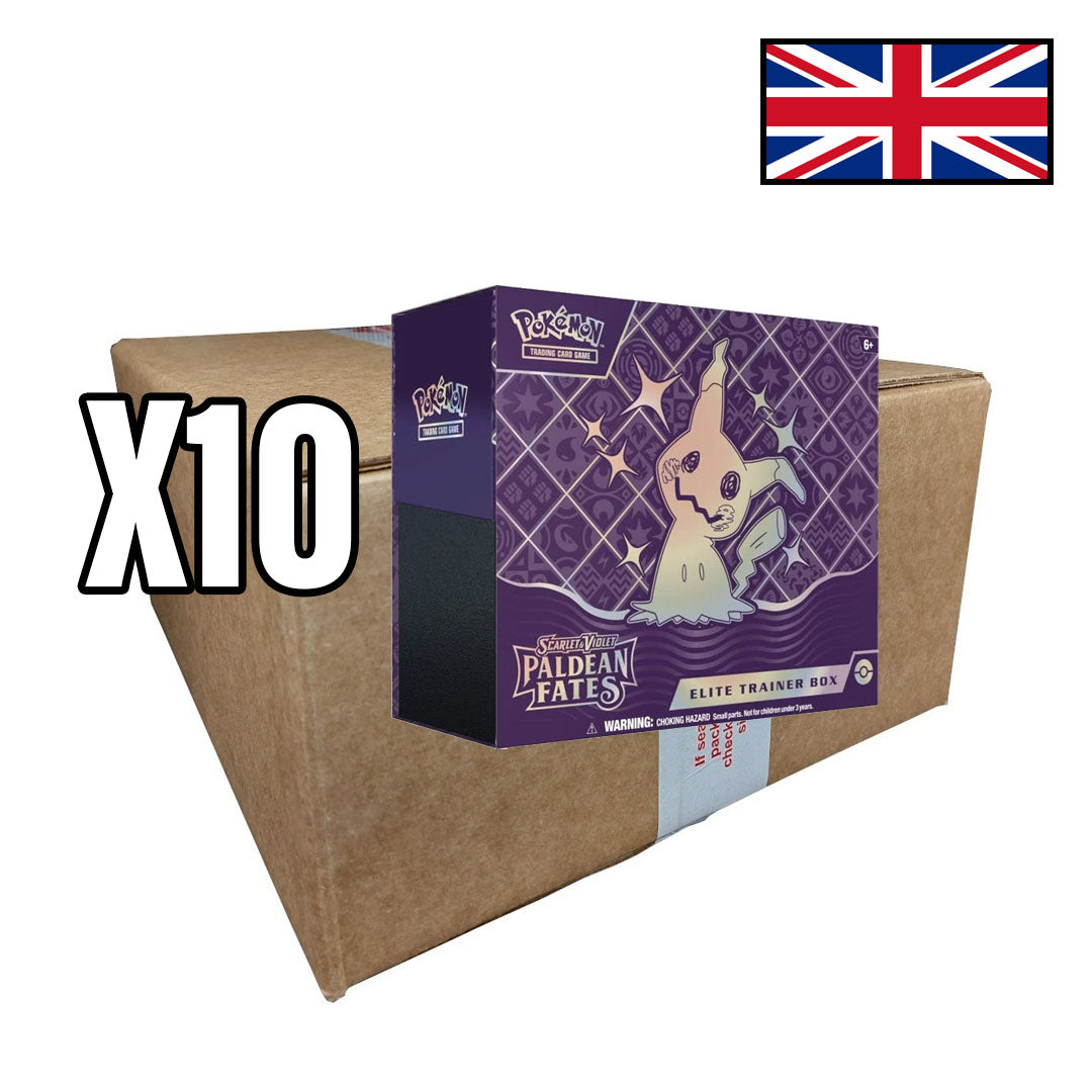 The Pokémon TCG: Scarlet & Violet-Paldean Fates Elite Trainer Box Case includes 10 Elite Trainer Box with: